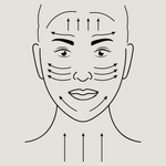 Sculpt & Alleviate: Using the groove of the gua sha tool on areas such as the under eye, eyebrow, & cheek will provide a sculpted appearance while alleviating puffiness. Maintaining the same pressure, you will anchor at the base of the area you are working on, guiding your tool with the other hand in an outward/sweeping motion.